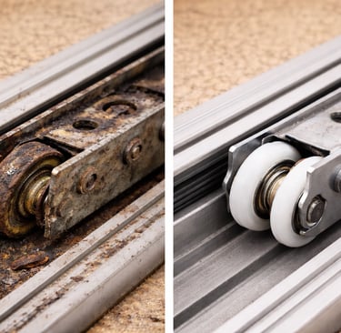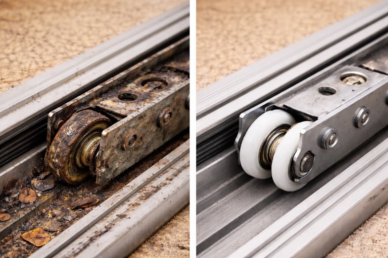 If your sliding door feels heavy, stuck, or makes grinding noises, the problem is usually worn or damaged rollers.
